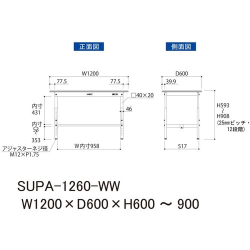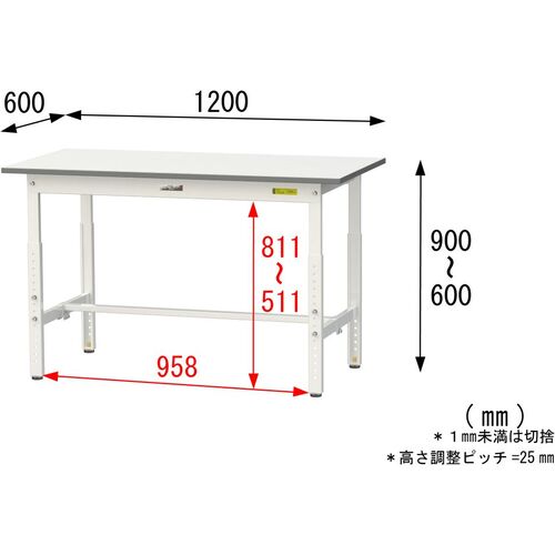 ヤマテック 軽量作業台 ワークテーブル150シリーズ 高さ調整タイプ 低圧メラミン天板 W1200×D600×H600~900mm シルキーホワイト SUPA-1260-WW