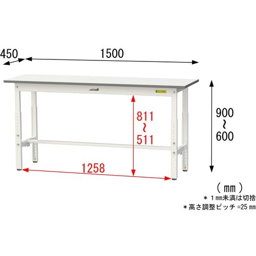 ヤマテック 軽量作業台 ワークテーブル150シリーズ 高さ調整タイプ 低圧メラミン天板 W1500×D450×H600~900mm シルキーホワイト SUPA-1545-WW