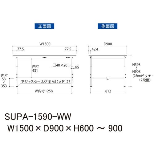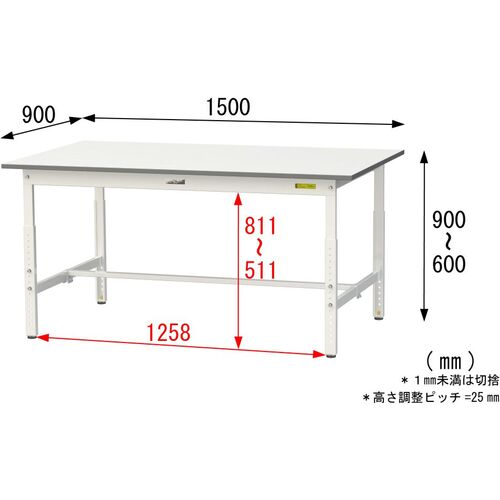 ヤマテック 軽量作業台 ワークテーブル150シリーズ 高さ調整タイプ 低圧メラミン天板 W1500×D900×H600~900mm シルキーホワイト SUPA-1590-WW