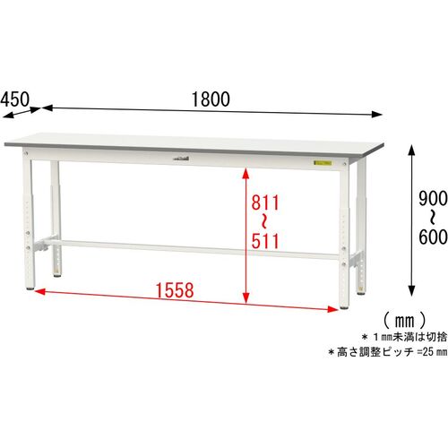 ヤマテック 軽量作業台 ワークテーブル150シリーズ 高さ調整タイプ 低圧メラミン天板 W1800×D450×H600~900mm シルキーホワイト SUPA-1845-WW