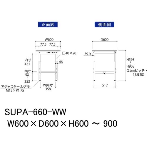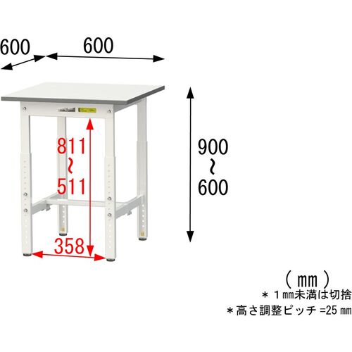ヤマテック 軽量作業台 ワークテーブル150シリーズ 高さ調整タイプ 低圧メラミン天板 W600×D600×H600~900mm シルキーホワイト SUPA-660-WW