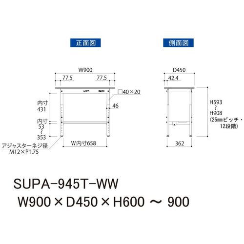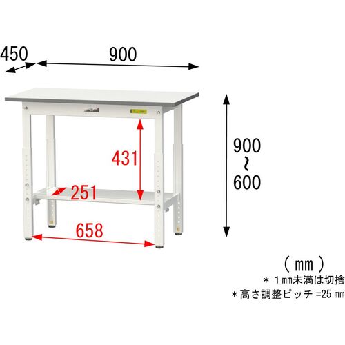 ヤマテック 軽量作業台 ワークテーブル150シリーズ 高さ調整タイプ 半面棚付 低圧メラミン天板 W900×D450×H600~900mm シルキーホワイト SUPA-945T-WW