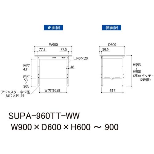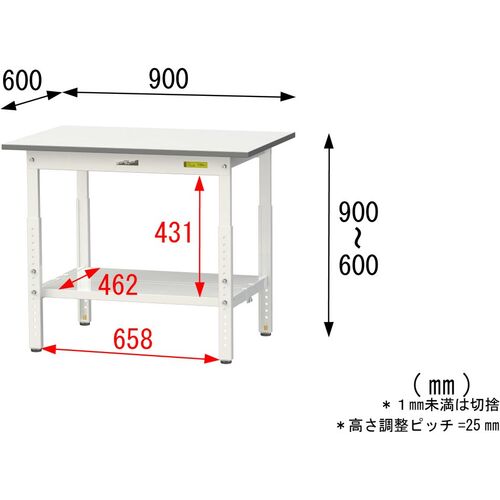 ヤマテック 軽量作業台 ワークテーブル150シリーズ 高さ調整タイプ 全面棚付 低圧メラミン天板 W900×D600×H600~900mm シルキーホワイト SUPA-960TT-WW