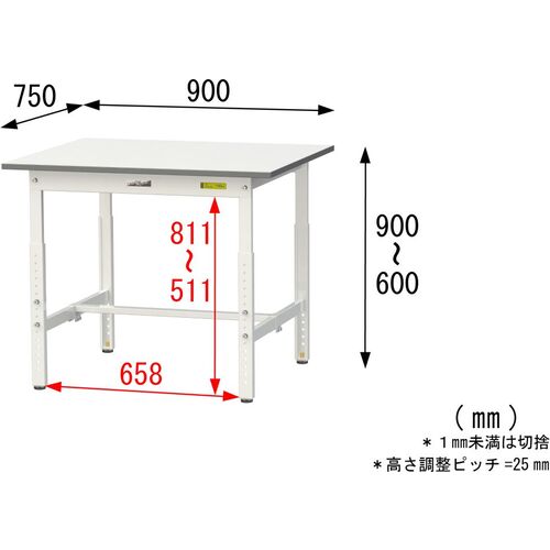 ヤマテック 軽量作業台 ワークテーブル150シリーズ 高さ調整タイプ 低圧メラミン天板 W900×D750×H600~900mm シルキーホワイト SUPA-975-WW