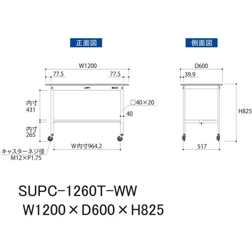 ヤマテック 軽量作業台 ワークテーブル150シリーズ 移動式 半面棚付 低圧メラミン天板 W1200×D600×H825mm シルキーホワイト SUPC-1260T-WW