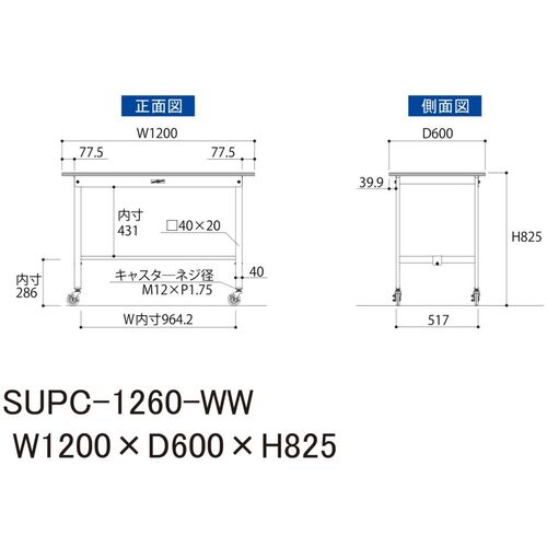ヤマテック 軽量作業台 ワークテーブル150シリーズ 移動式 低圧メラミン天板 W1200×D600×H825mm シルキーホワイト SUPC-1260-WW