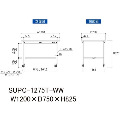 ヤマテック 軽量作業台 ワークテーブル150シリーズ 移動式 半面棚付 低圧メラミン天板 W1200×D750×H825mm シルキーホワイト SUPC-1275T-WW
