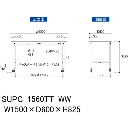 ヤマテック 軽量作業台 ワークテーブル150シリーズ 移動式 全面棚付 低圧メラミン天板 W1500×D600×H825mm シルキーホワイト SUPC-1560TT-WW