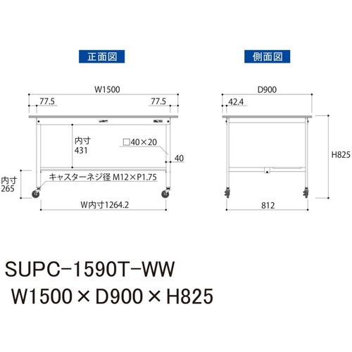 ヤマテック 軽量作業台 ワークテーブル150シリーズ 移動式 半面棚付 低圧メラミン天板 W1500×D900×H825mm シルキーホワイト SUPC-1590T-WW