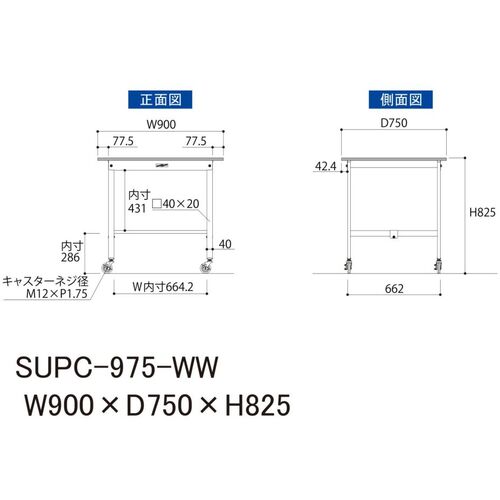 ヤマテック 軽量作業台 ワークテーブル150シリーズ 移動式 低圧メラミン天板 W900×D750×H825mm シルキーホワイト SUPC-975-WW
