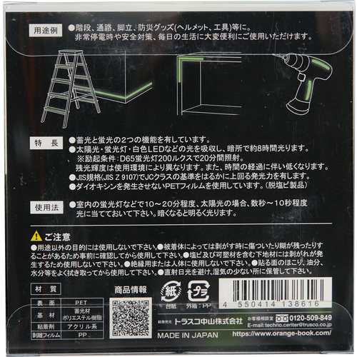 9. TRUSCO 高輝度蓄光蛍光テープ 50mmx1m TNBK-5001