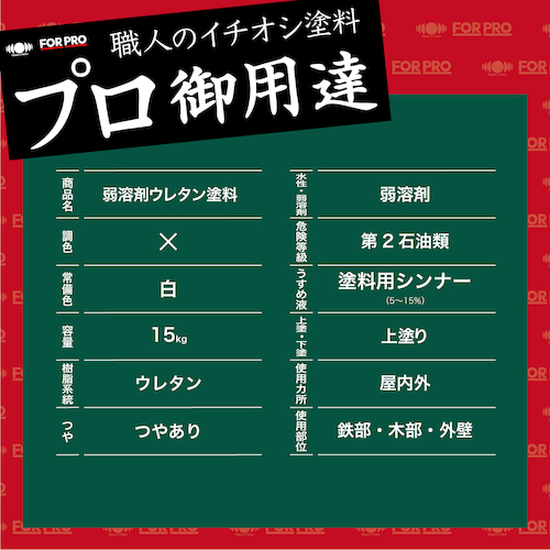 ニッぺ FORPRO弱溶剤形ウレタン塗料 15kg 白 411F091 4976124749025