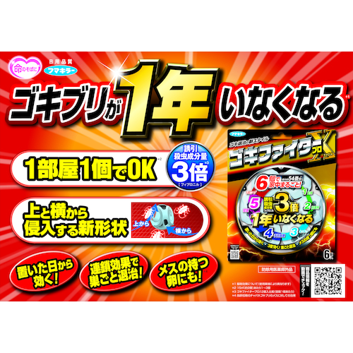 ●誘引殺虫成分量が3倍になりました(ゴキファイタープロ比較、容器1個あたり)。