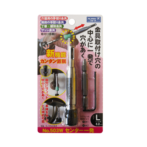 ●皿穴の中心に一発で下穴があくため、金具がずれません。