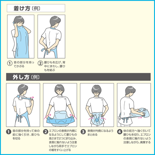 ●防水性の高いポリエチレン製で、水、血液、体液などの湿性生体物質を通さず、感染防御にも優れています。