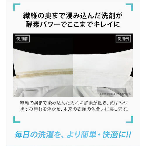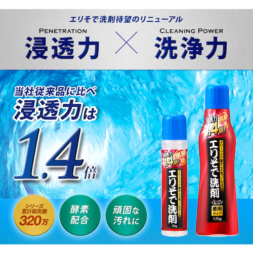 ●自社従来品と比較して、浸透力が1.4倍アップし、時間が経った汚れも落ちやすいです。