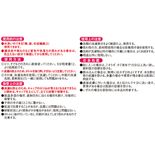 ●使用の目安:汚れ全体を覆い、しっかりしみ込む量