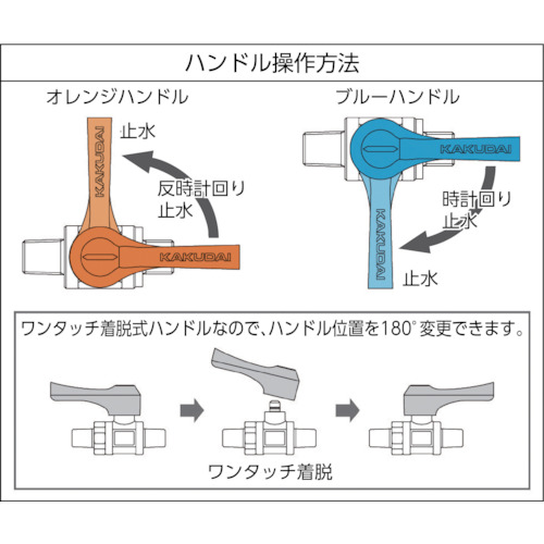 ●オレンジハンドル:反時計回り止水、ブルーハンドル:時計回り止水