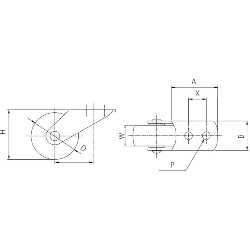 ユーエイ プレート式 固定 キャスター ゴム 車輪径50mm  Gタイプ GRE型 取付寸法14×0 GRE-50R