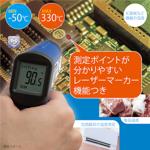 ●レーザーマーカー機能付き・小型コンパクトな表面温度測定用の温度計。