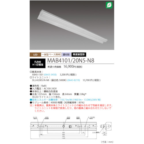 HotaluX LED一体型ベース照明Nu両反射笠形昼光色2000lm MAB4101/20N5-N8