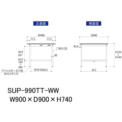 ヤマテック 軽量作業台 ワークテーブル150シリーズ 固定式 全面棚付 低圧メラミン天板 W900×D900×H740mm シルキーホワイト SUP-990TT-WW