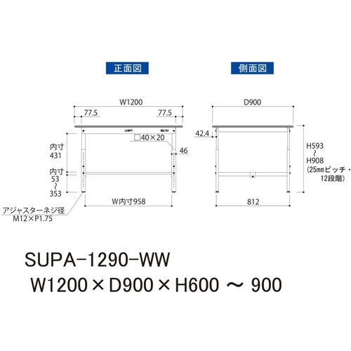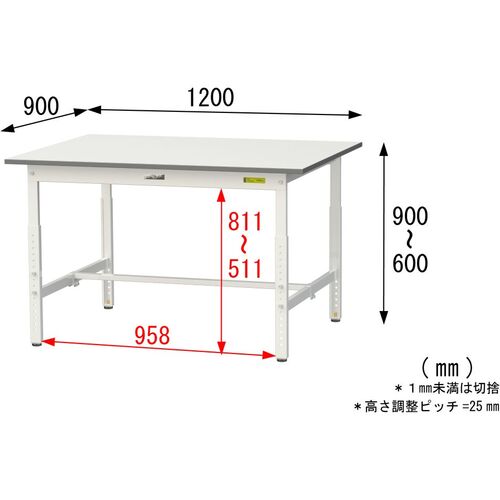 ヤマテック 軽量作業台 ワークテーブル150シリーズ 高さ調整タイプ 低圧メラミン天板 W1200×D900×H600~900mm シルキーホワイト SUPA-1290-WW