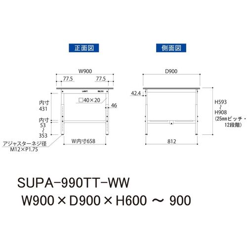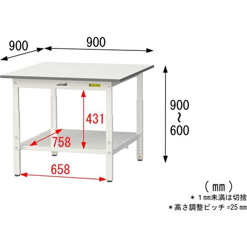 ヤマテック 軽量作業台 ワークテーブル150シリーズ 高さ調整タイプ 全面棚付 低圧メラミン天板 W900×D900×H600~900mm シルキーホワイト SUPA-990TT-WW
