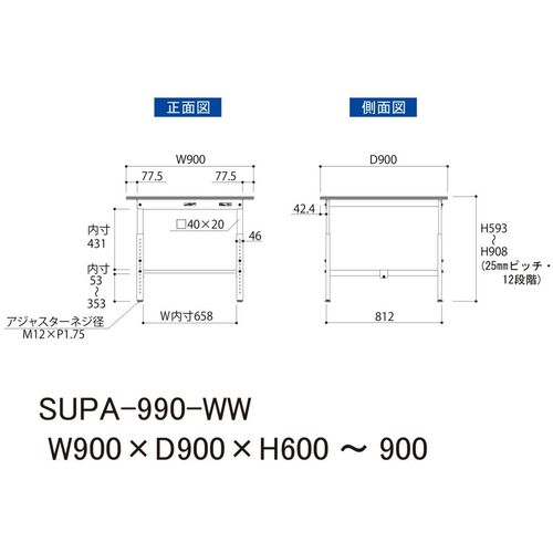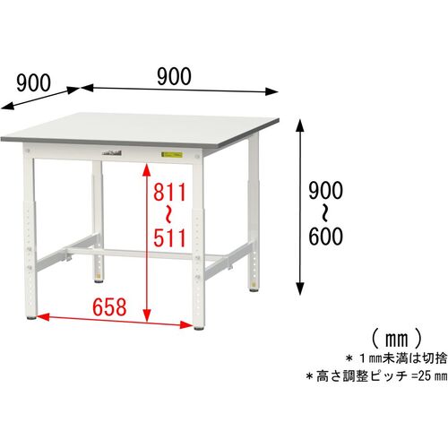 ヤマテック 軽量作業台 ワークテーブル150シリーズ 高さ調整タイプ 低圧メラミン天板 W900×D900×H600~900mm シルキーホワイト SUPA-990-WW
