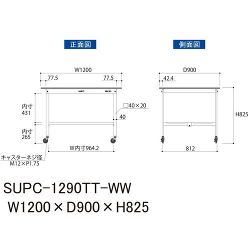 ヤマテック 軽量作業台 ワークテーブル150シリーズ 移動式 全面棚付 低圧メラミン天板 W1200×D900×H825mm シルキーホワイト SUPC-1290TT-WW