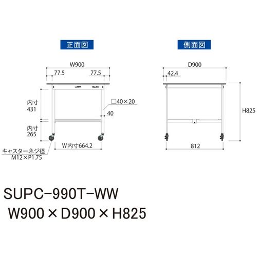 ヤマテック 軽量作業台 ワークテーブル150シリーズ 移動式 半面棚付 低圧メラミン天板 W900×D900×H825mm シルキーホワイト SUPC-990T-WW