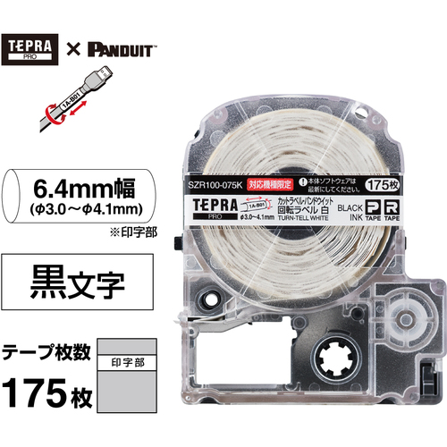 KING JIM 【純正】「テプラ」PROテープ カットラベル・パンドウィット/回転ラベル/白ラベル/黒文字 対応ケーブル径Φ3.0~4.1mm SZR100-075K