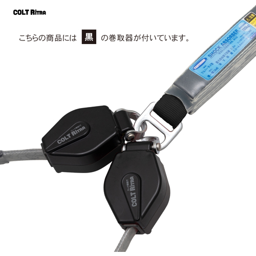 TSUYORON ライトハーネス ツインランヤード付き ロック機構付き巻取式コルトリトラ 黒 Mサイズ TH510-2CR93SVOT-BLKBK-M-2R23BX