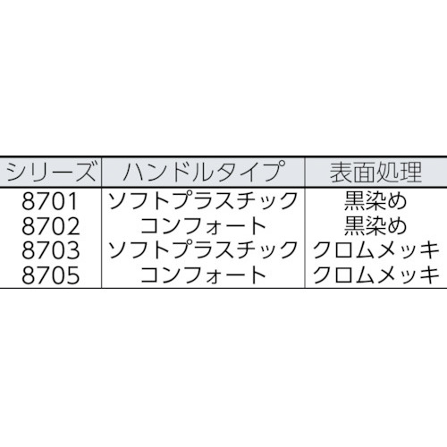 ●入念な焼入れ処理が施されたつかみ面の硬度は約HRC61で、耐磨耗性が高く、確実なグリップを発揮します。