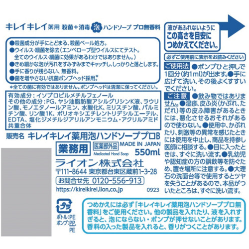 9. ライオン キレイキレイ薬用泡ハンドソープ 無香料 550mL BPPGHULP