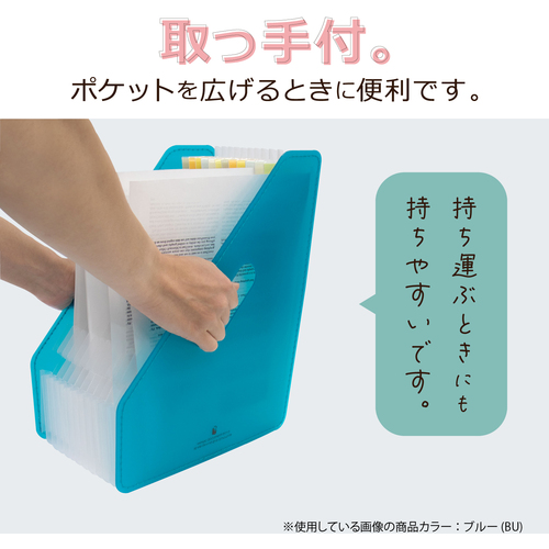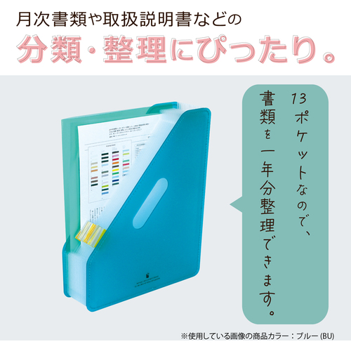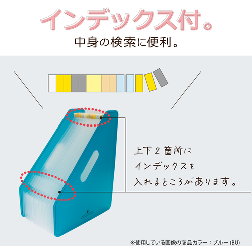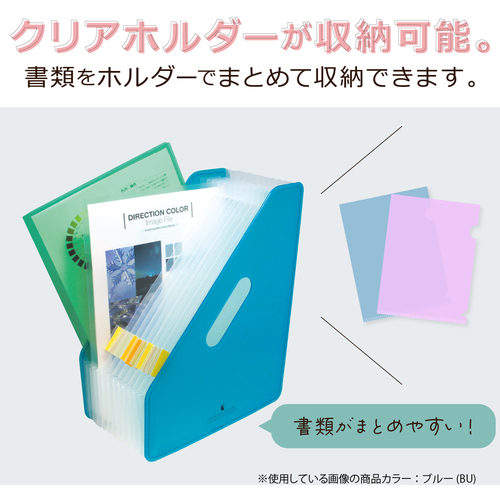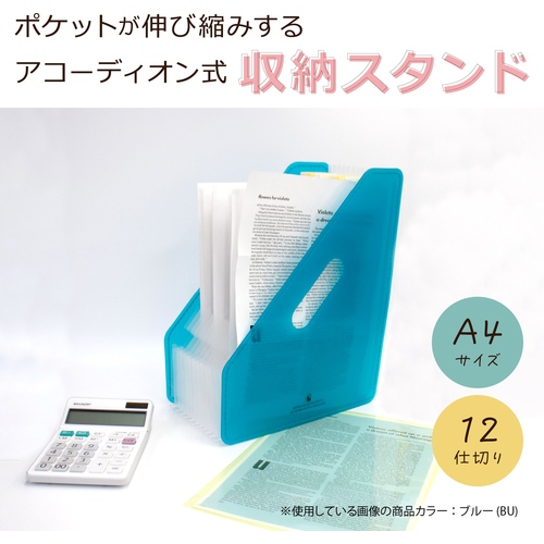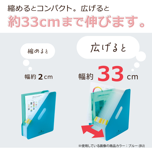 ●書類のボリュームによってポケットが伸び縮みする、アコーディオン式の収納スタンドです。