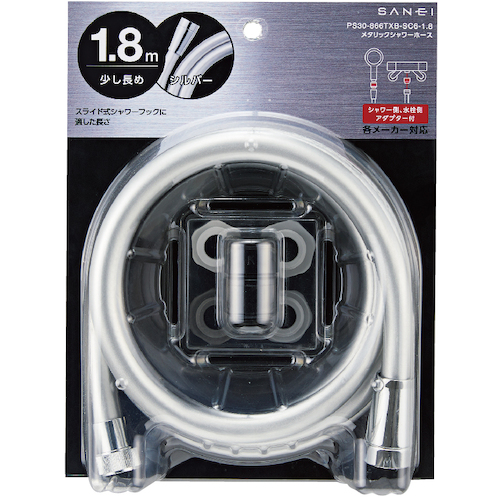 SANEI メタリックシャワーホース シルバー アダプター付 三層式 1.8m G1/2 PS30-866TXB-SC6-1.8