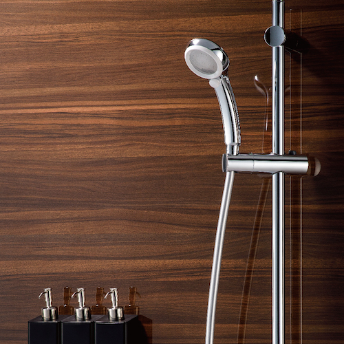 ●シルバーカラーでメッキタイプのシャワーヘッドと相性抜群です。