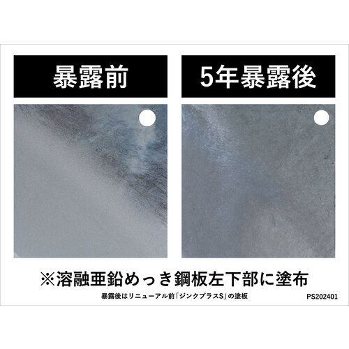 ●従来品「ジンクプラスS」の樹脂をエポキシ樹脂に変更したことにより、密着性、耐食性が向上しました。