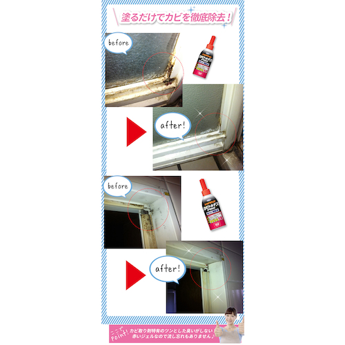 ●1~2時間放置するだけで、ジェルの塩素が深部まで浸透してかびを根こそぎ除去します。