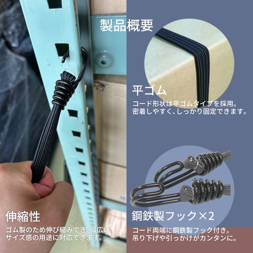 ユタカメイク ゴム フラットバンジー 13mm×600mm ブラック BF-612
