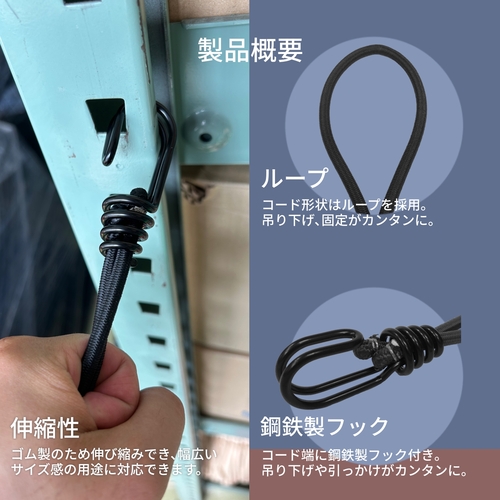 ループ形状で、引っ掛けてシート等を固定可能