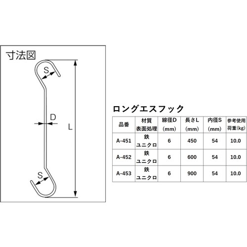ニッサチェイン ロングエスフック 600mm A-452