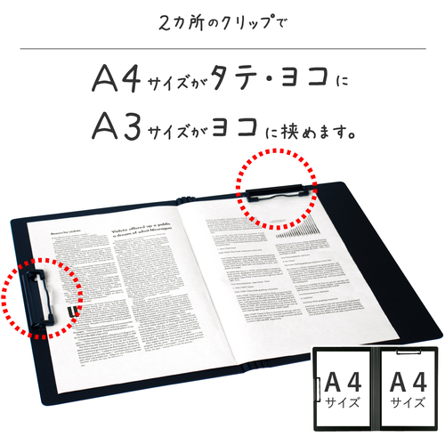 ●A4縦、横にはさめるダブルクリップタイプのクリップファイルです。