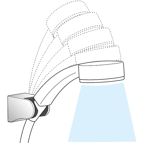 ●シャワー掛具にシャワーヘッドを差し込んだ状態で、角度を10°刻みで5段階に調整可能です。