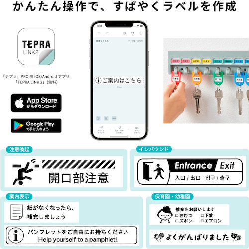 ●iOS/Androidアプリ「TEPRA LINK2」と「Hello」の2種類のアプリに対応。