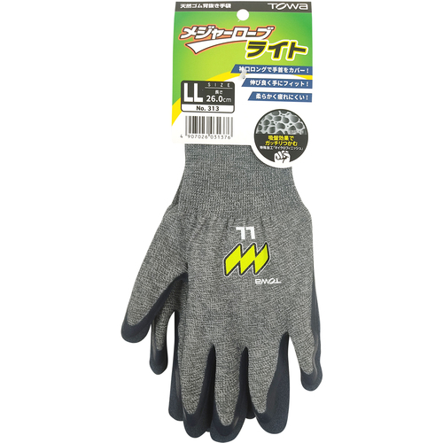 トワロン 天然ゴム背抜き手袋 メジャーローブライト LL 313-LL
