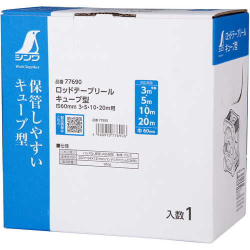 シンワ ロッドテープリール キューブ型 巾60mm 3・5・10・20m用 77690