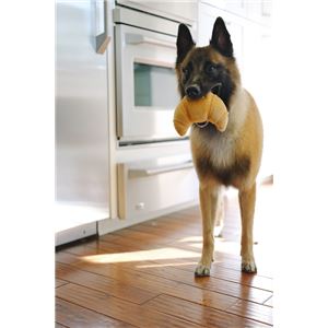 ベロア製で肌触りがよく、ワンちゃんの興味を惹きつける音も鳴ります。形や触り心地だけではなく、作り方にもこだわっており、子供用品と同等の品質基準で生産しています。少しでも丈夫な作りにするために、生地は2枚重ねにし、縫い目もダブルステッチ(2度縫い)を手作業でしています。クッション材には再生ペットボトル繊維を使用し、地球環境にも優しいおもちゃです。また、洗濯機で丸洗いができるので衛生的です。