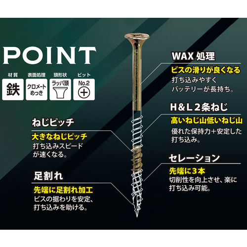 ●注)木材がかたい場合は、ねじ切れを起こす場合があります。